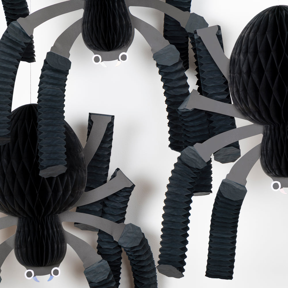 Watch out, there's a spider about! But don't worry, these clever designers have crafted this Black Honeycomb Spiders Hanging Decorations - 3 pcs to be hauntingly fun Halloween decorations. Their big eyes, textured honeycomb bodies, silver foil pincers and long dangling legs, add just the right amount of eerie charm.