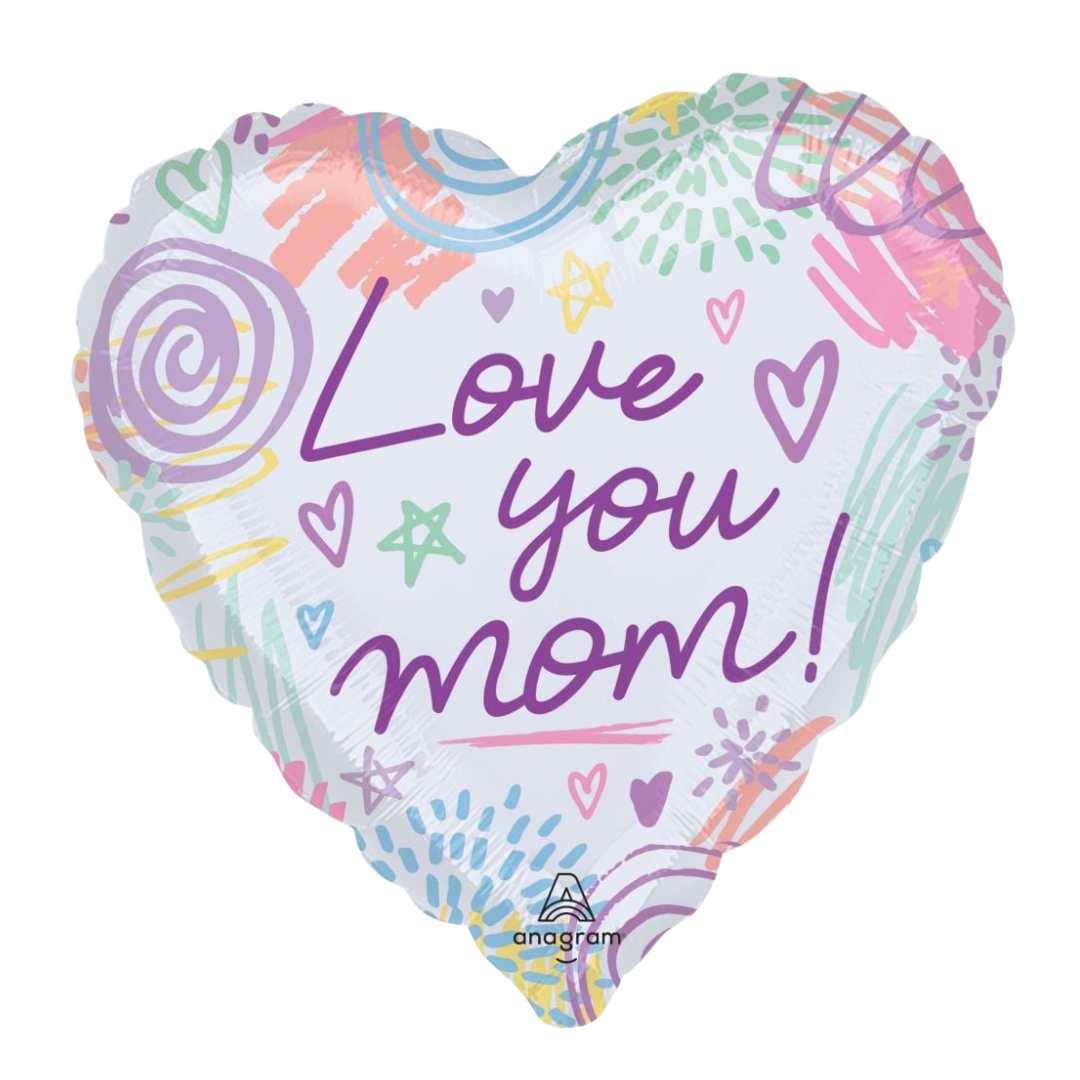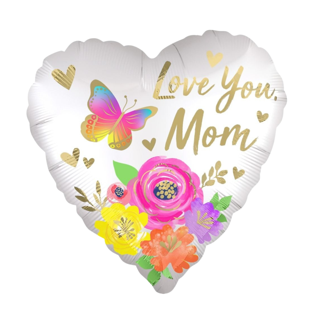 Satin Floral "Love You, Mom" Mother's Day Heart Foil Balloon, 18in