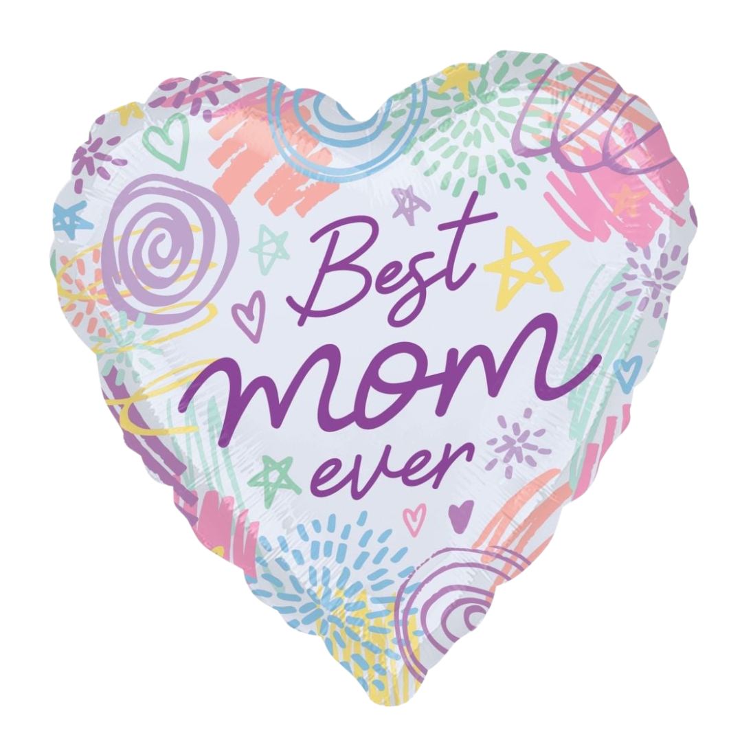 White with Scribbles "Best Mom Ever" Heart Shaped Foil Balloon, 18in