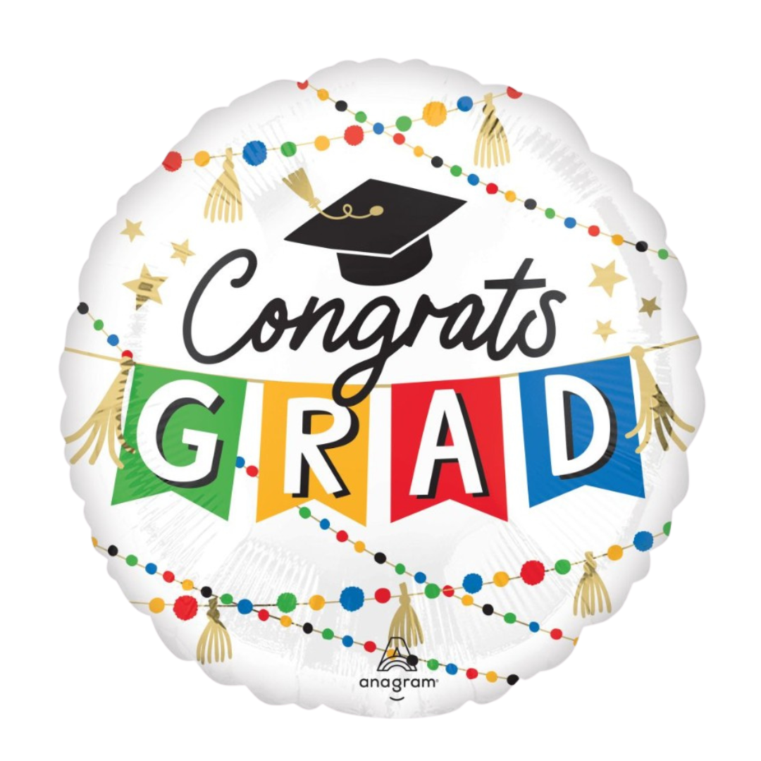 Colorful "Congrats Grad" Foil Balloon, 18in