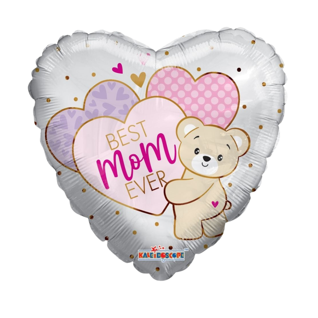 White Best Mom Ever Bear with Hearts Foil Balloon, 18in