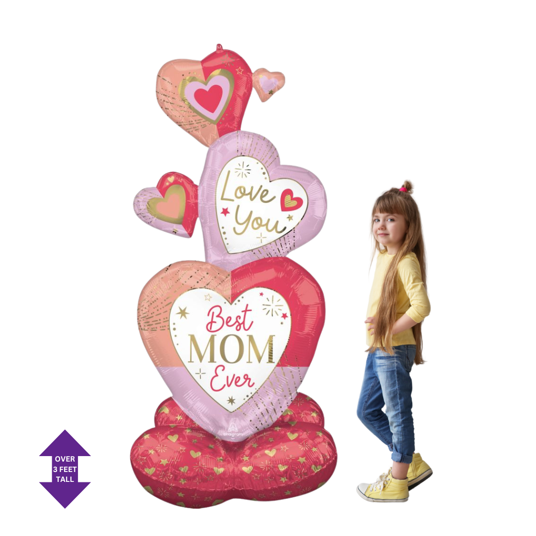 Life-Size Stacked Hearts Mother's Day Foil Balloons - Giant