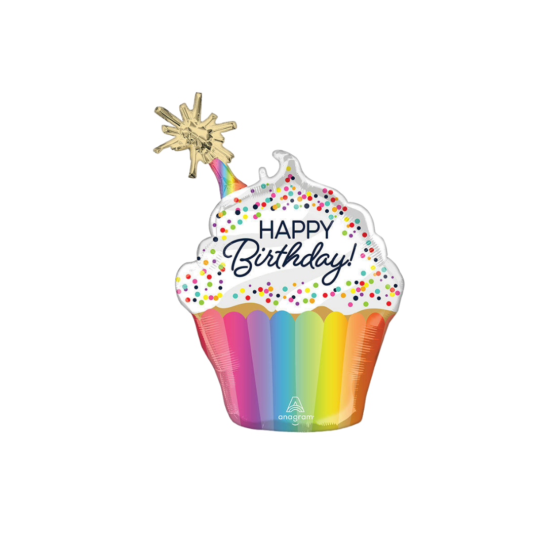 Rainbow Cupcake Confetti Birthday Foil Balloon, 31in