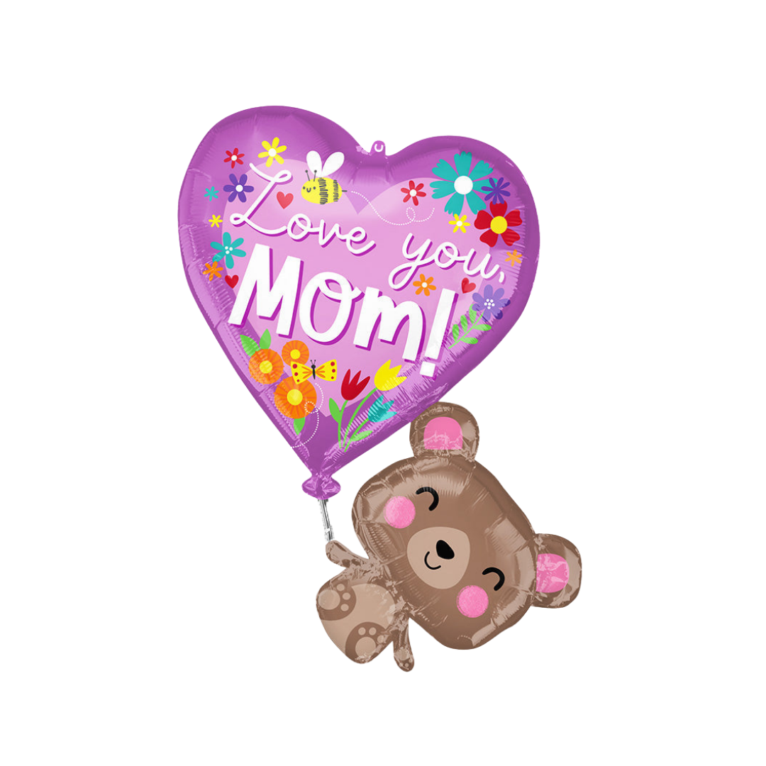 Purple Floral "Love You Mom" Heart Foil Balloon, 31in