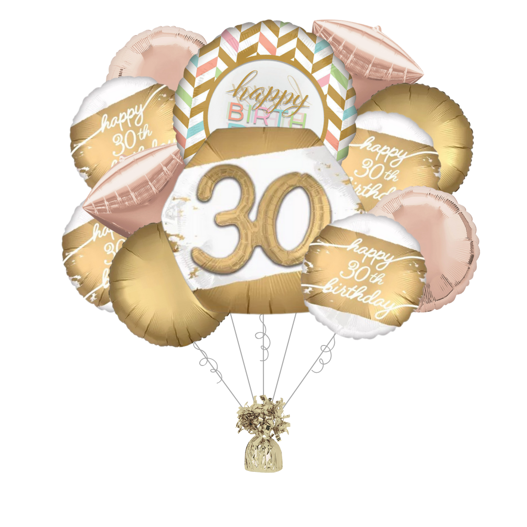 Premium Golden Age 30th Birthday Foil Balloon Bundle with Balloon Weight, 13pc