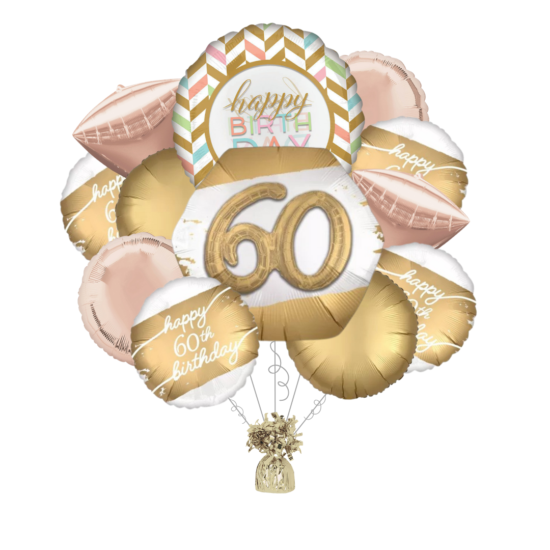 Golden Age 60th Happy Birthday Foil Balloon Bundle