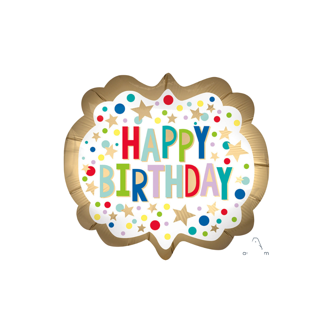 White and Satin Gold Happy Birthday Foil Balloon, 25in