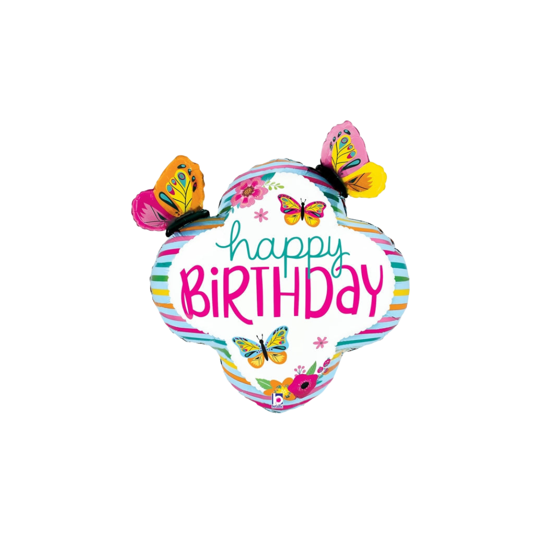 White and Pink Happy Birthday Butterfly Foil Balloon, 30in