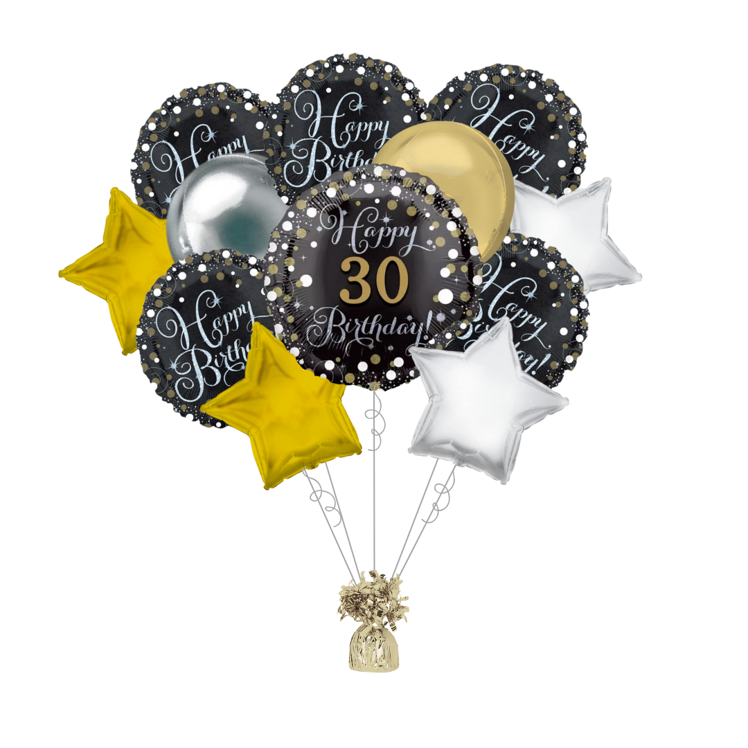Sparkling Celebration Happy 30th Birthday Foil Balloon Bundle
