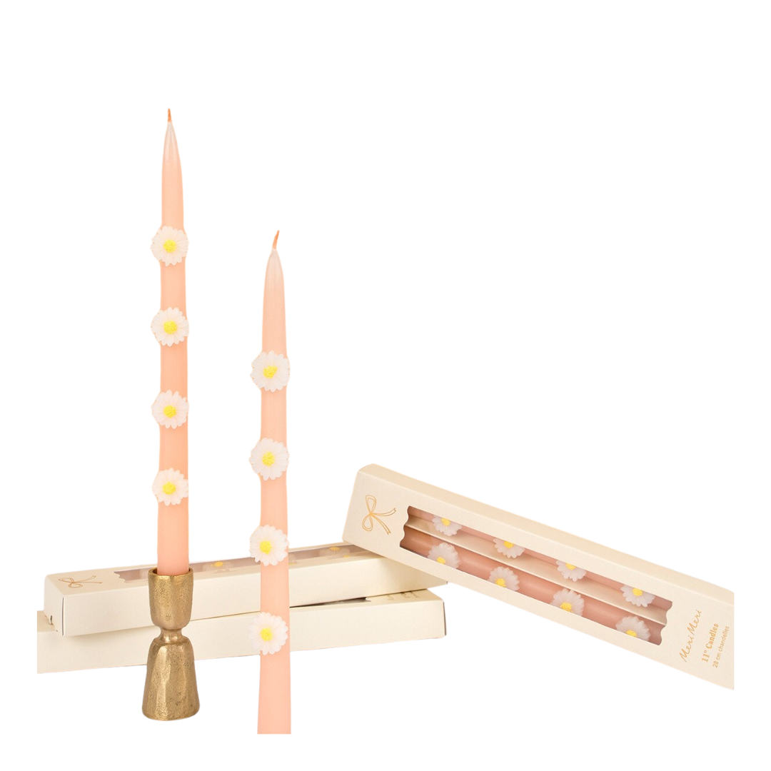 Why settle for plain candles when you can have delightful pink candles with charming daisy embellishments? These stunning Pink Daisy Taper Candles also feature pink wicks, and it's this attention to detail that makes them so special. They'll look lovely on your Easter party table or mantel, making them ideal for a springtime party, fairy party, or princess party. They also make a great host gift.