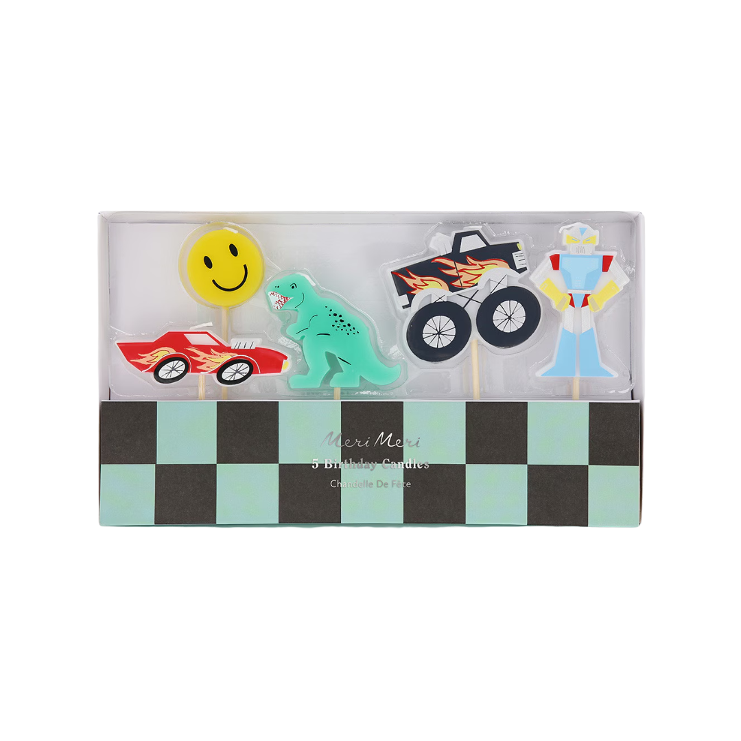 Fun and nostalgic, these Toybox Icon Candles will appeal to both kids and adults celebrating the wonder of play. The retro designs of these bold and bright birthday candles will instantly make any cake look cheerful, colorful and cute.
