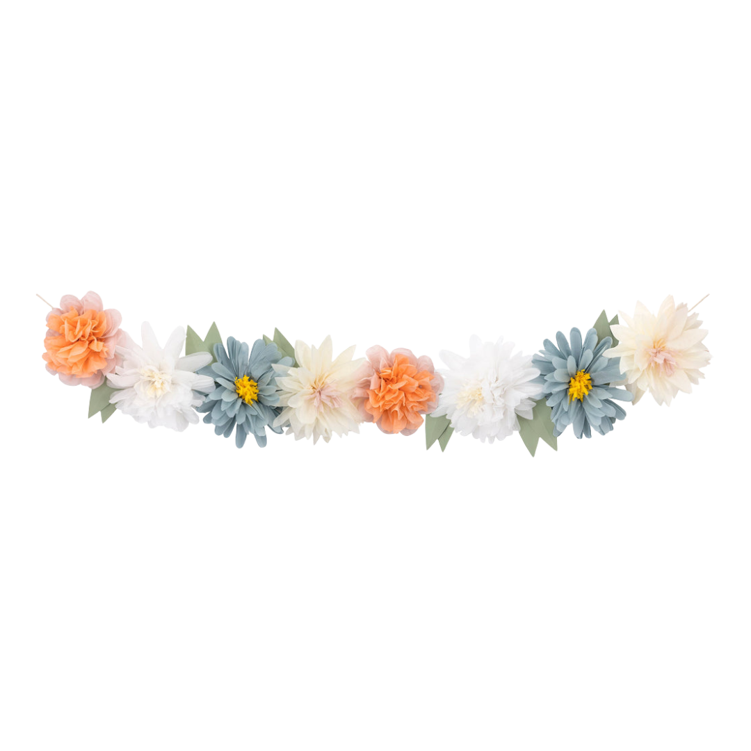 This stunning Flowers In Bloom Giant Garland Decoration makes a wonderful party decoration, or home decor piece. It features eight large tissue paper flowers in various pastel hues. It would look sensational at a wedding, anniversary party, or any springtime celebration!