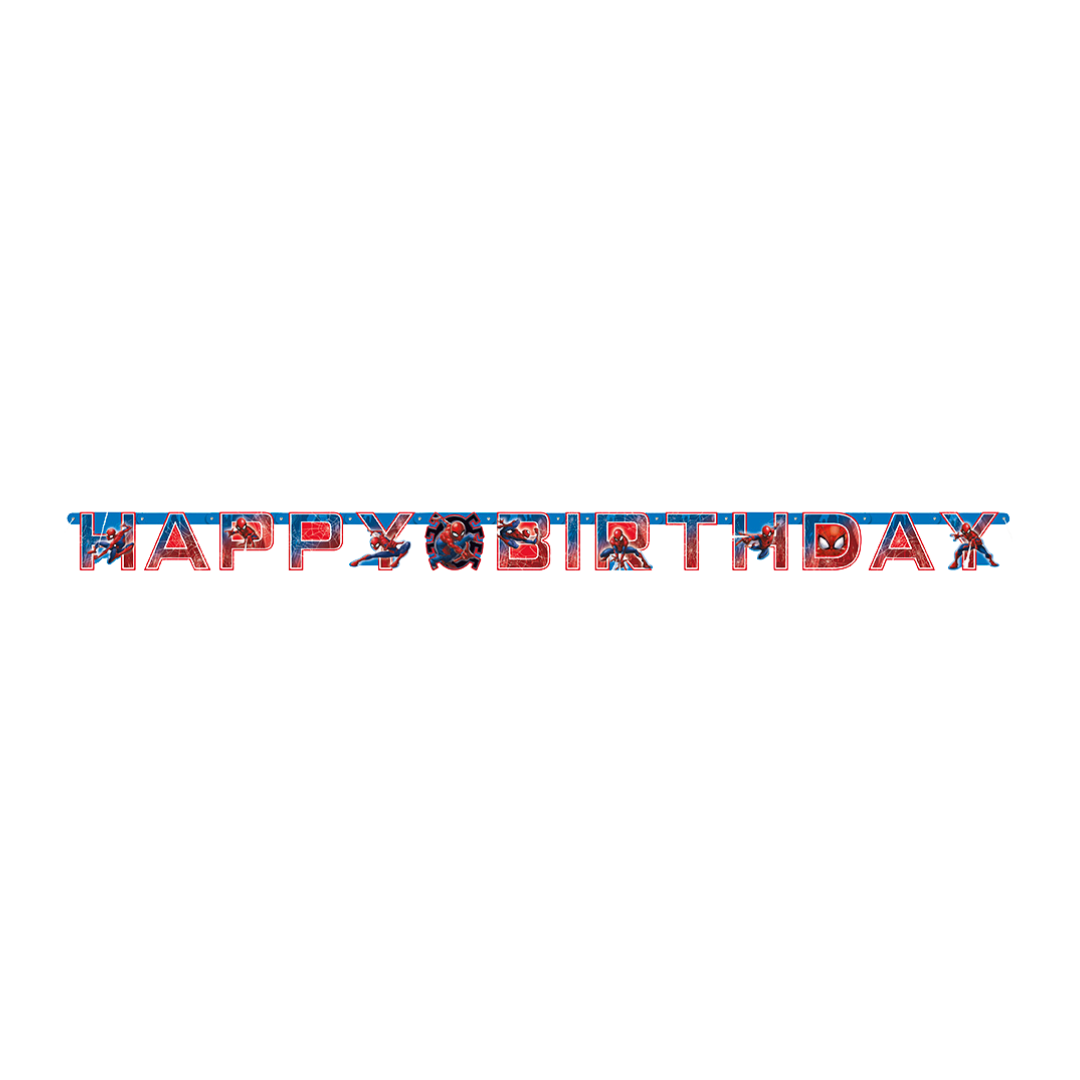 Swing into celebration mode with this Red and Blue Spider-Man "Happy Birthday" Jointed Banner! Featuring action packed graphics of Spider-Man on bold, web themed letters, this 6.4foot banner is a must have for any superhero fan's birthday bash. Hang it on a wall, across a party table, or along a doorway to instantly energize the room and make your event feel unforgettable.