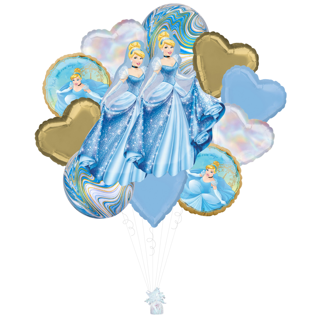 Turn your party into a royal affair with our Cinderella Foil Balloon Bundle! Featuring a stunning Cinderella balloon centerpiece surrounded by heart and round balloons in shimmering shades of blue, white, and gold, this set captures all the magic of the fairytale. Perfect for princess-themed birthdays or special celebrations, this bundle will make every guest feel like they’re at the royal ball.