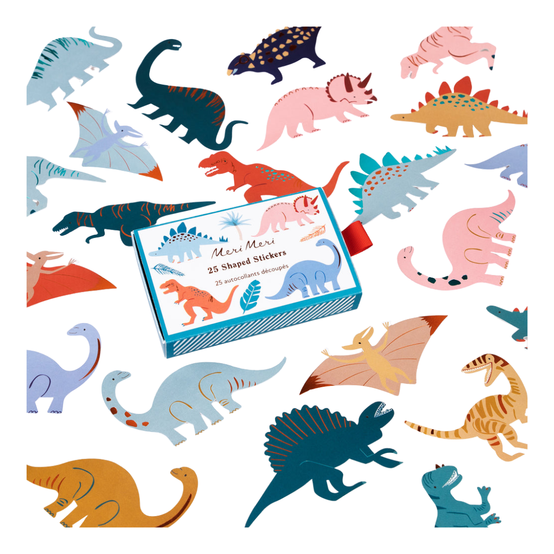 Roar! These dynamic Dinosaur Shaped Stickers - 25 pcs are perfect for placing in notebooks or cards, or on posters or gift tags. They're also great to pop into party bags, or to use for craft activities at dinosaur parties. Packaged in a matchbox style, they make a wonderful gift for kids who love creative play.