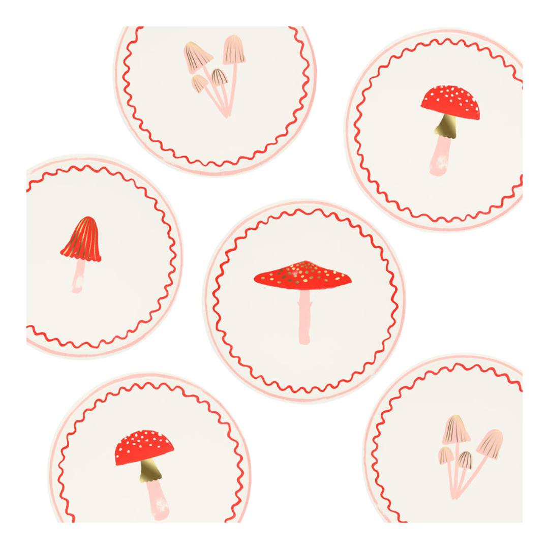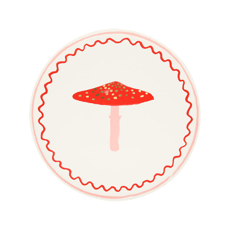 Mushrooms are still having a moment and look magical as a festive plate design. Their red and white fit the traditional festive color theme perfectly, with modern pops of stylish gold foil and pink for extra effect. These Pink and Red Mushroom Small Appetizer Dessert Plates are ideal for savory or sweet treats.
