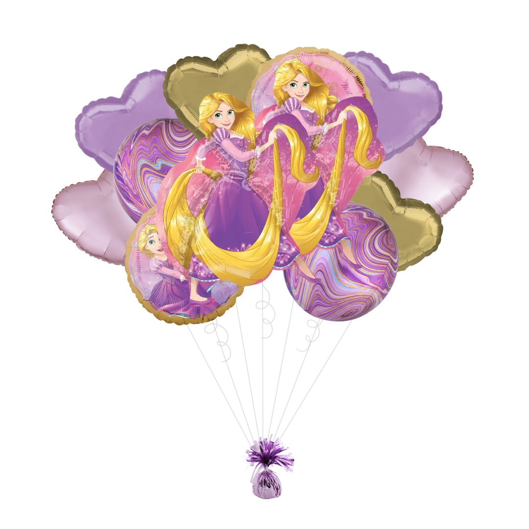 Let your celebration shine with our Rapunzel Foil Balloon Bundle! Featuring a Rapunzel balloon centerpiece with her signature golden hair, surrounded by heart and round balloons in shades of purple, pink, and gold, this set captures the magic of Tangled. Perfect for princess-themed birthdays, this bundle will make your party feel like a royal adventure.