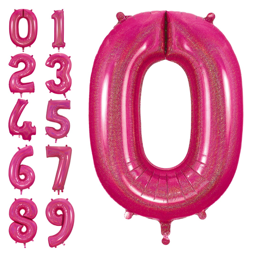 Hot Pink Holographic Number 0-9 Foil Balloon, 34in