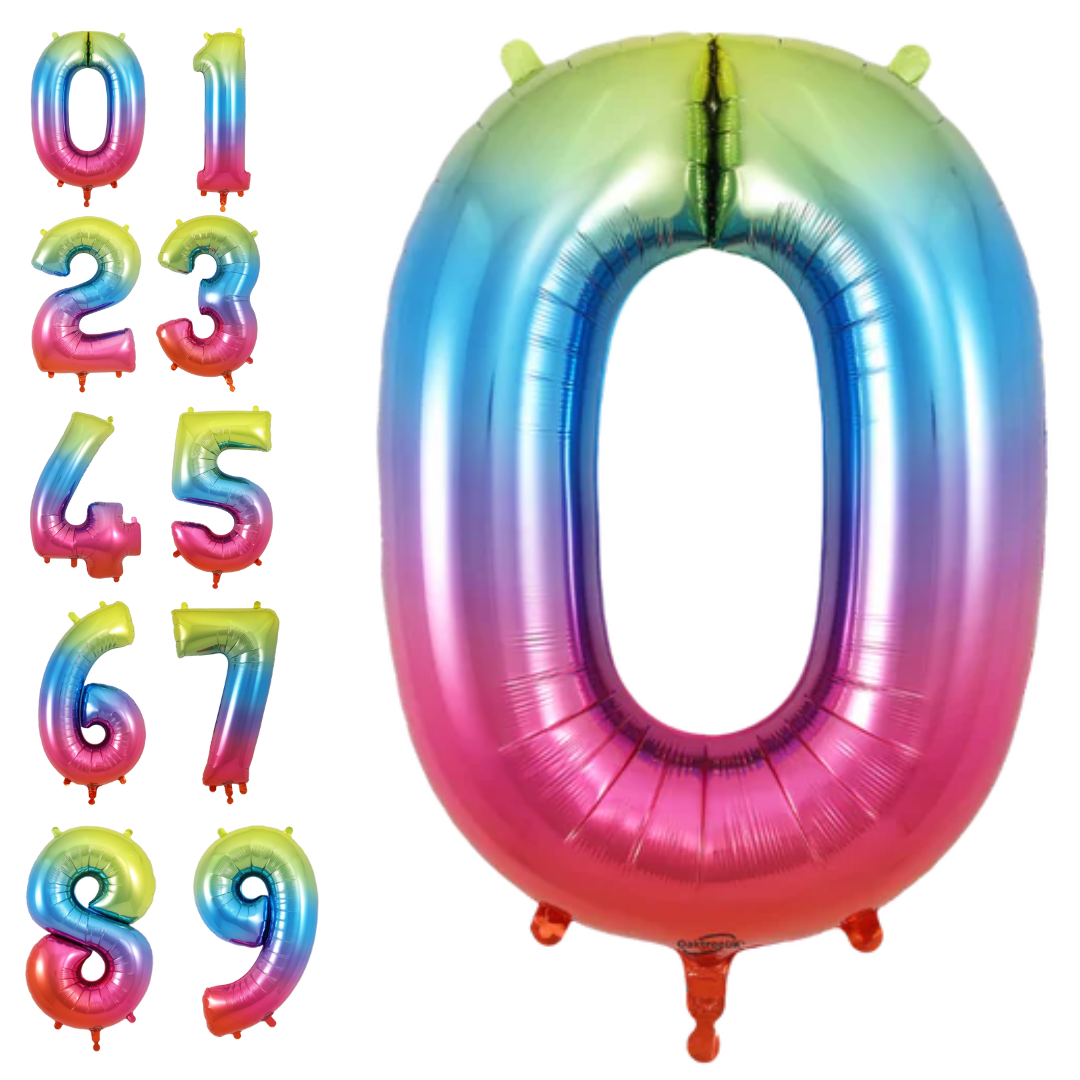 Rainbow Ombre Number 0-9 Foil Balloon, 34in