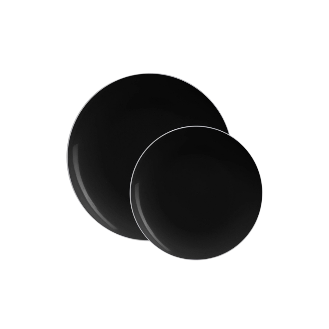 Black Silver Rimmed Plastic Plates - 2 Sizes