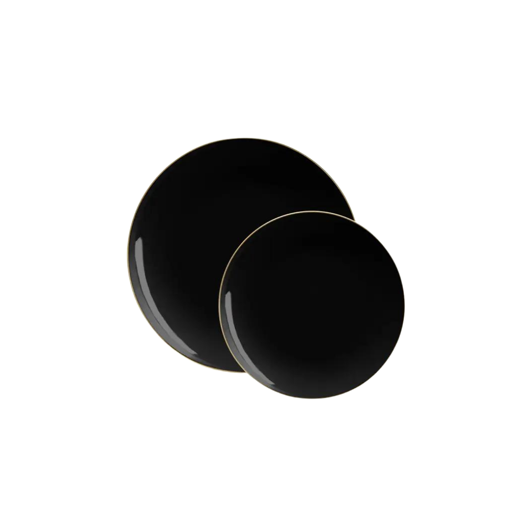Black Gold Rimmed Plastic Plates - 2 Sizes