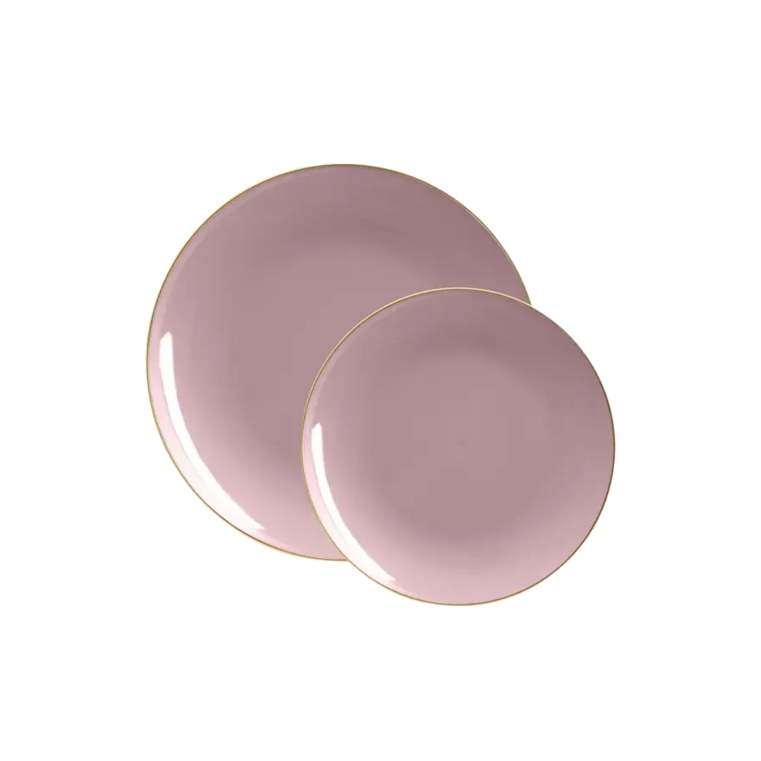 Mauve Gold Rimmed Plastic Plates - 2 Sizes