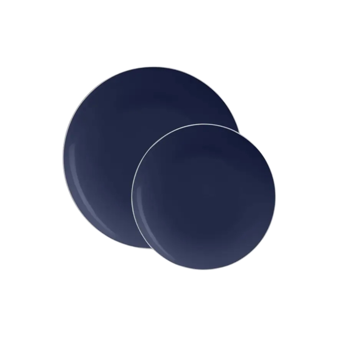Navy Silver Rimmed Plastic Plates - 2 Sizes