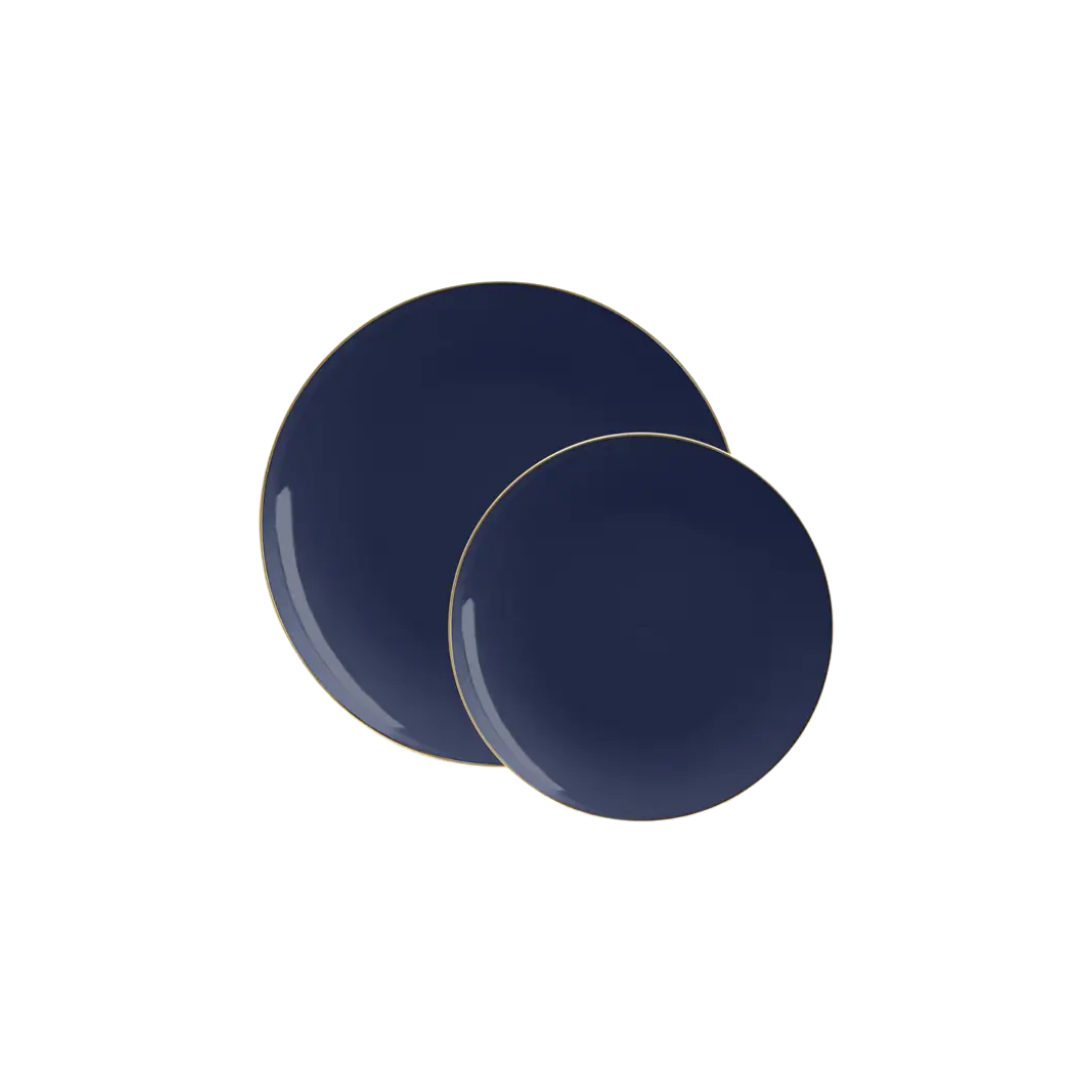 Navy Gold Rimmed Plastic Plates - 2 Sizes