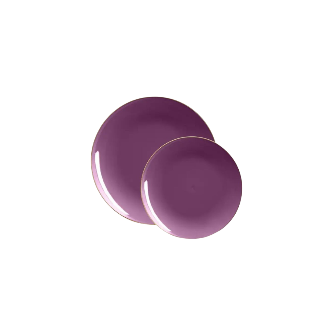 Purple Gold Rimmed Plastic Plates - 2 Sizes