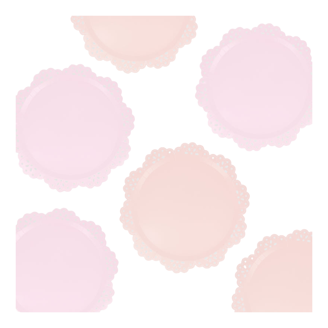 Elevate your celebration with these elegant and versatile Pink and Peach Broderie Anglaise Lace Appetizer Plates! This pretty party range is inspired by broderie anglaise, a delicate eyelet embroidery design that is back in style. Teamed with pink and peach colors and embossed details, this is the perfect range for bridal showers and baby showers.