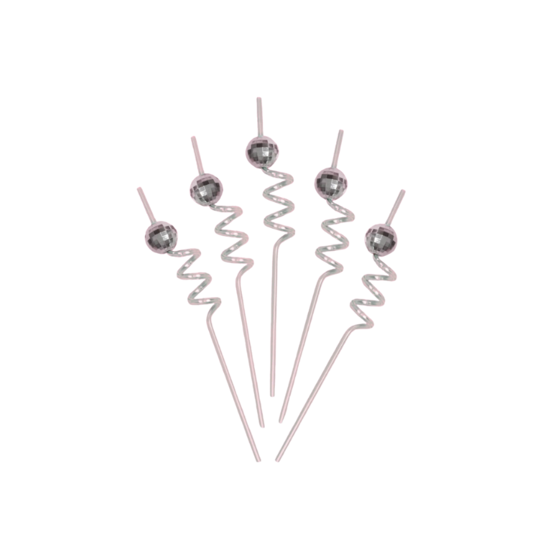 Get ready to hit the dance floor with our vibrant Silver Disco Party Swirly Straws - 16 pk, designed to make you the dancing queen of the night! Perfect for sipping cocktails and grooving to the beats, these straws bring the disco era right to your glass.