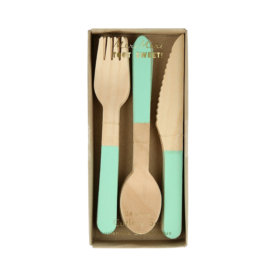 This Mint Green Wooden Cutlery - 24pcs adds a hint of color to your table. Perfect for Easter, baby showers, and so much more.