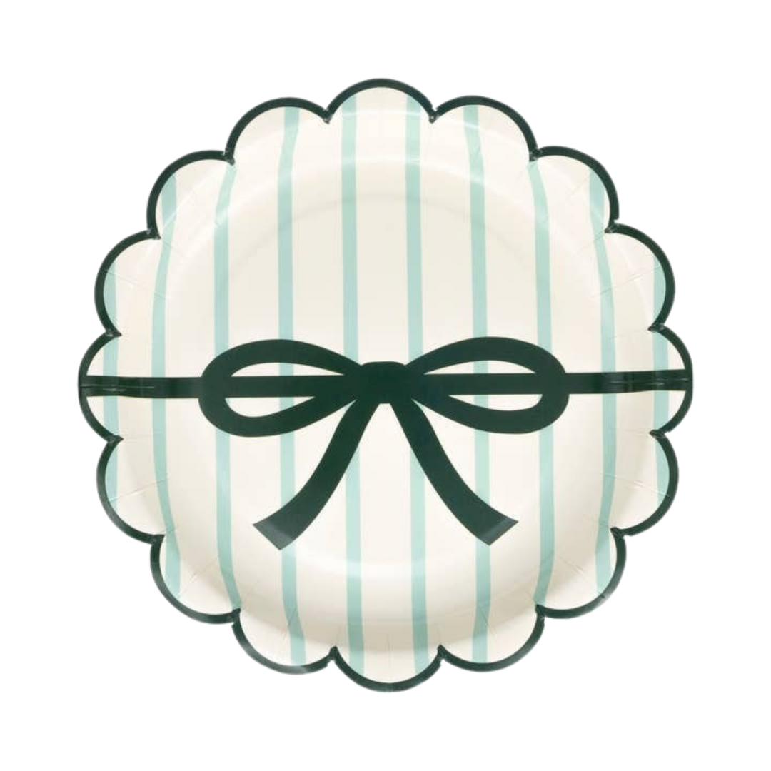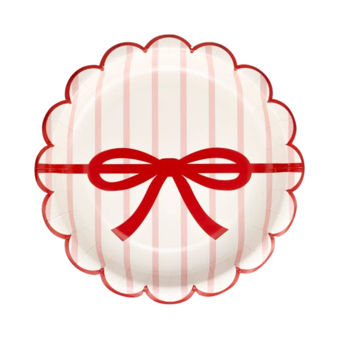 Add timeless charm to your celebration with these Red and Green Striped with Bows Scalloped Small Appetizer Dessert Plates. Featuring elegant vertical stripes and a dainty bow design, these plates bring a festive and sophisticated touch to any table setting.