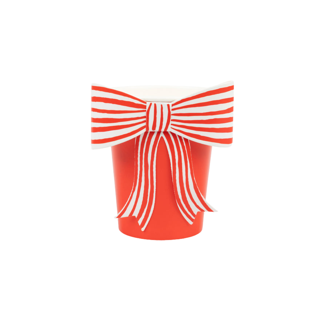 A joyful red and winter white color scheme, teamed with chic striped bows, is the perfect blend of traditional charm and fashion forward flair. The classic color combination of these Red & White Stripy Bow Cups paper cups will team beautifully with the rest of your Christmas tableware and decorations too. Ideal to serve your holiday drinks in style.