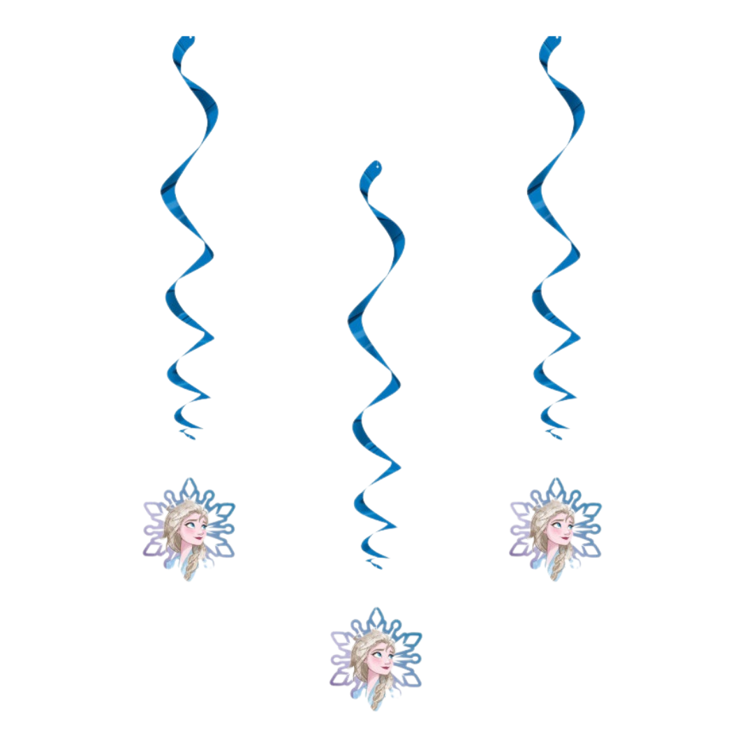 Transform your party into a winter wonderland with Blue Frozen Hanging Swirl Decorations - 3 Pcs! These shimmering blue swirls feature a dazzling snowflake cutout of Elsa at the bottom, adding a magical touch to ceilings, doorways, or party tables. Lightweight and easy to hang, they’re perfect for bringing the charm of Arendelle to any birthday or Frozen-themed celebration.