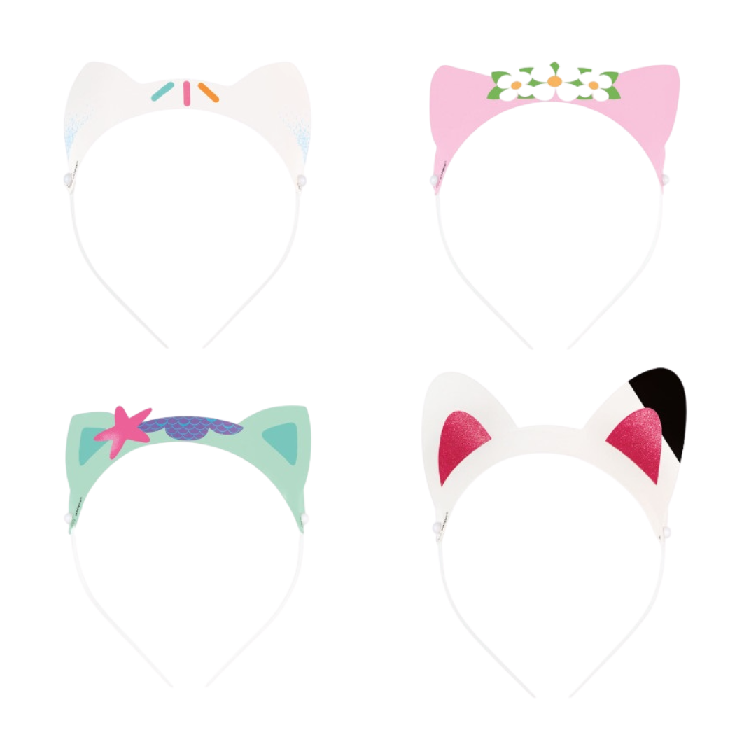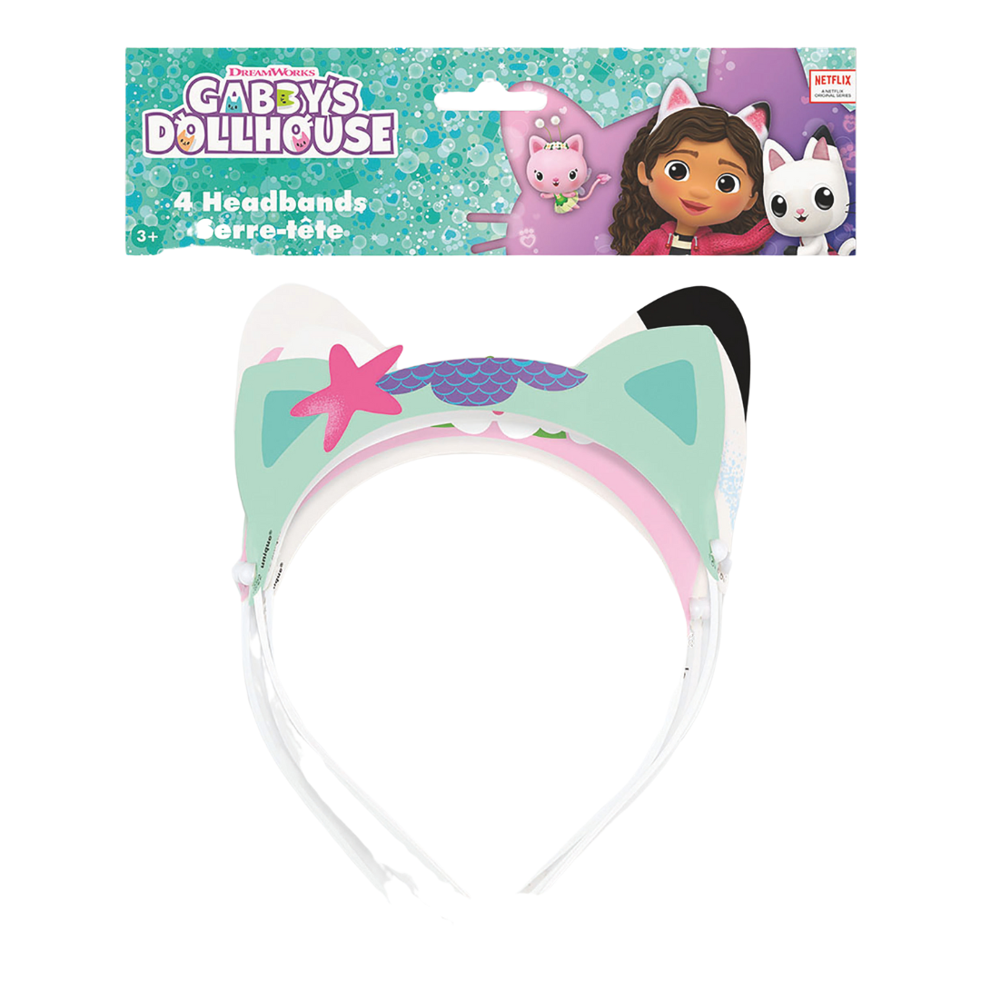 Let little ones step into Gabby’s world with these Gabby's Doll House Paper Headbands with Glitter - 4 pk! This 4-pack features glittery kitty ears inspired by Gabby’s magical crew, complete with colorful mermaid details and starfish accents. The perfect party favor or costume accessory to make their celebration extra purr-fect and unforgettable!