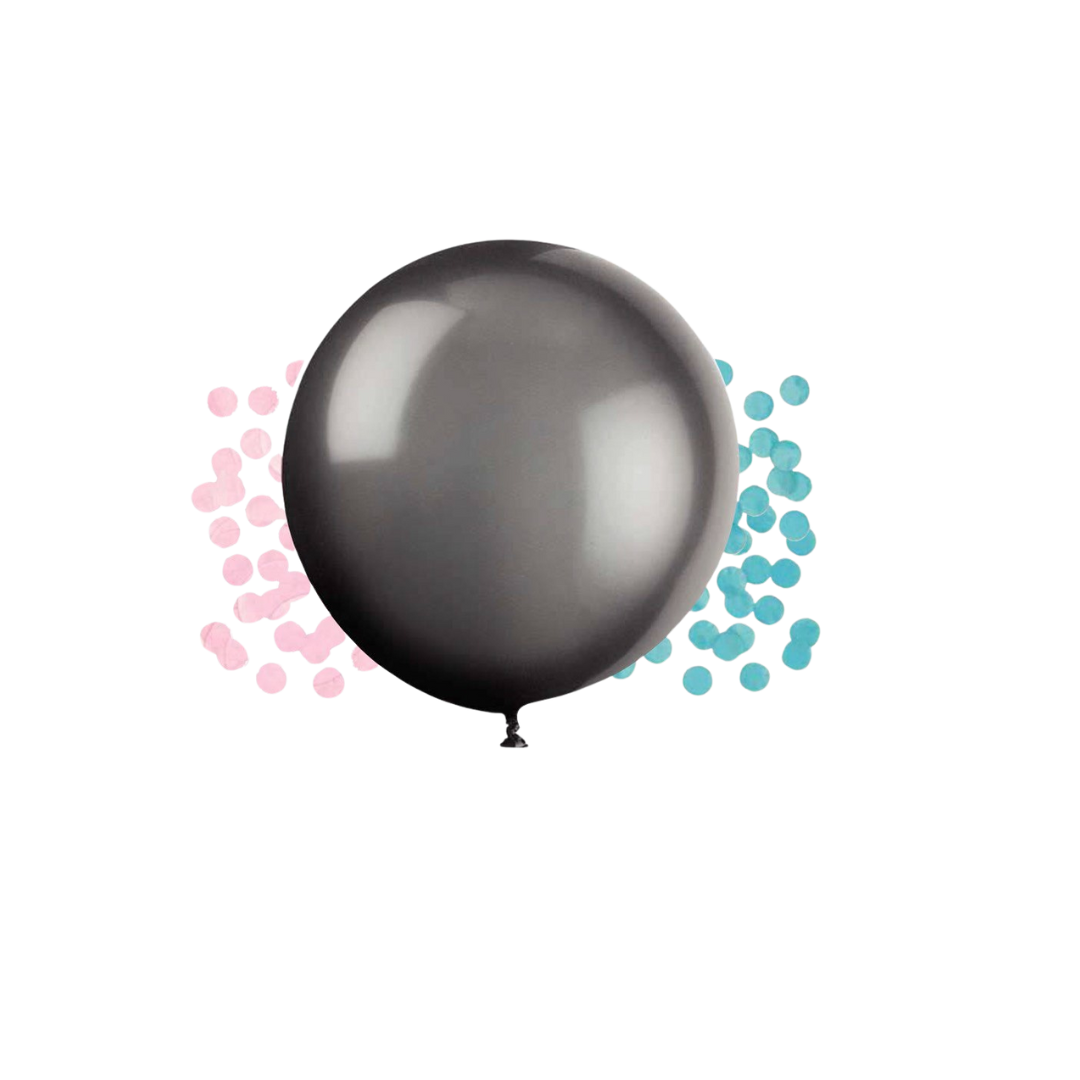 Black Giant Gender Reveal Latex Balloon with Confetti, 24in