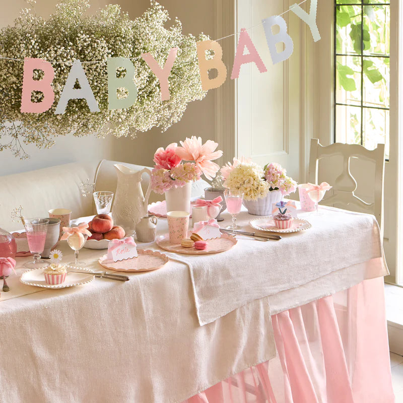 These Assorted Colors Ditsy Vintage Scallop Dinner Plates add effortless elegance to any setting. This classic design is influenced by floral pattern trends, with a scalloped border for a stylish look. The four different vintage color ways, of pink, peach, mint and blue, in this paper plate set are perfect for afternoon tea, garden parties, bridal showers or baby showers.