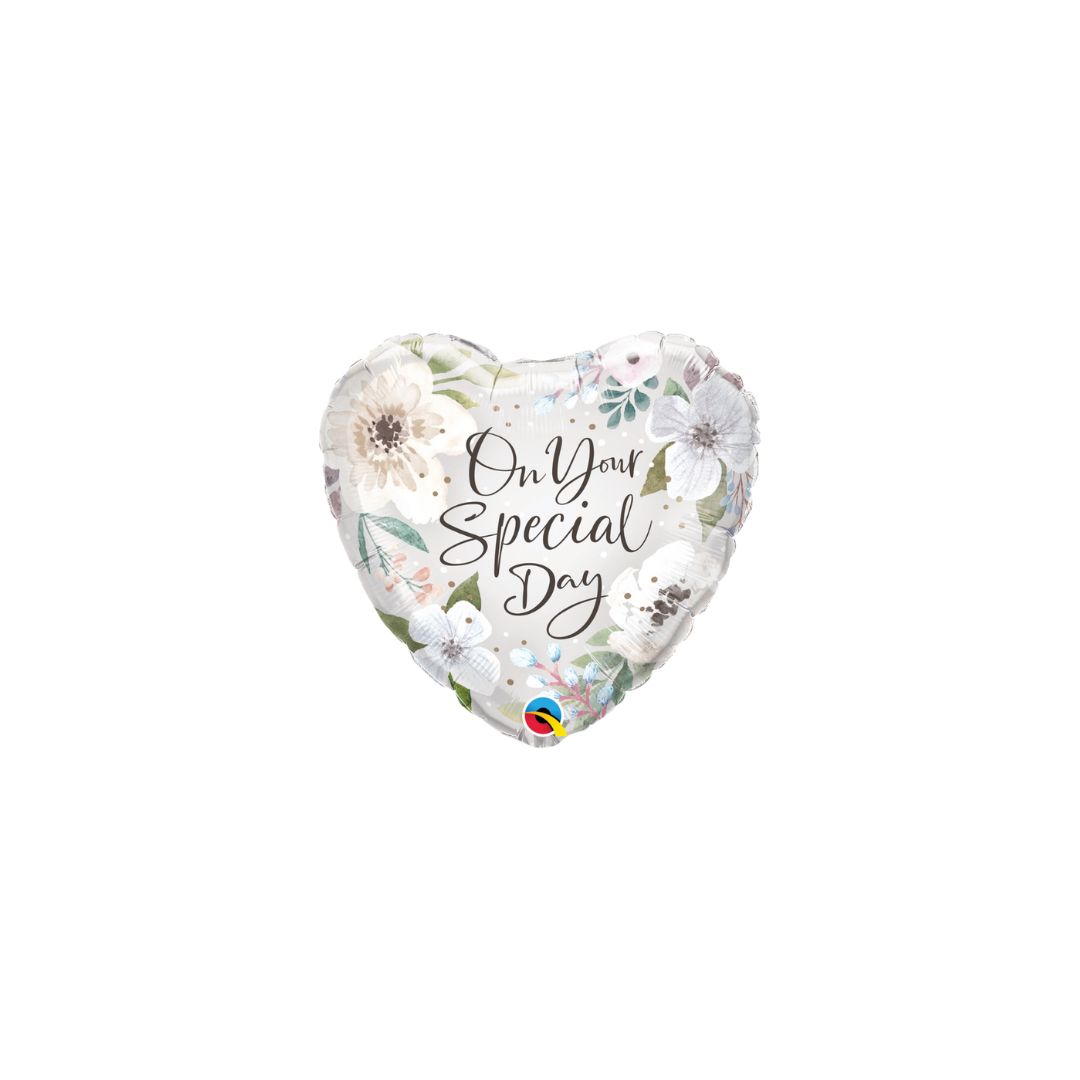 Add a touch of elegance to any celebration with this Floral “On Your Special Day” Heart Foil Balloon, 18in! Designed with delicate floral accents on a white background, this balloon is perfect for anniversaries, weddings, or any special occasion where you want to express heartfelt sentiments. It's sure to make any event feel unforgettable and meaningful.